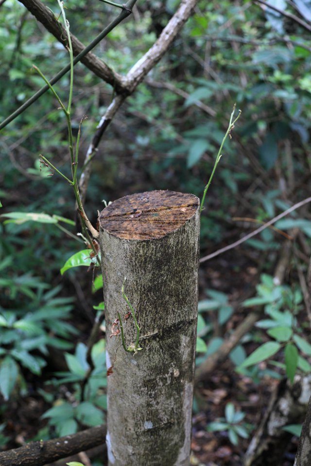 12月24日上午,記者再次來到首次發(fā)現(xiàn)盜采土沉香的地點(diǎn)。經(jīng)過近兩個(gè)小時(shí)的搜尋,在東北側(cè)山坡和溪谷中,又接連發(fā)現(xiàn)了6棵被盜伐的疑似野生土沉香。記者隨即將情況向仙湖植物園管理處副主任、植物專家張壽洲博士通報(bào)了情況,張博士告訴記者,管理處會(huì)盡快勘查現(xiàn)場,對被破壞的土沉香進(jìn)行處理。"通常情況下,被鋸斷的土沉香不會(huì)死亡,我們會(huì)根據(jù)實(shí)際情況對受損的植株采取相應(yīng)的保護(hù)措施。另外,我們會(huì)用水泥、油漆對土沉香被盜采盜伐的斷面進(jìn)行封閉處理,讓不法分子盜采不到香料。"張博士說。
