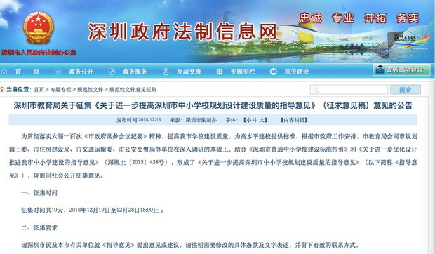 征集意見至12月28日下午6點截止,如對《指導(dǎo)意見》有想法或建議對市民,可將注明需要修改的具體條款用文字表述,并和有效的聯(lián)系方式一并發(fā)送到szxxjs@sz.edu.cn郵箱。