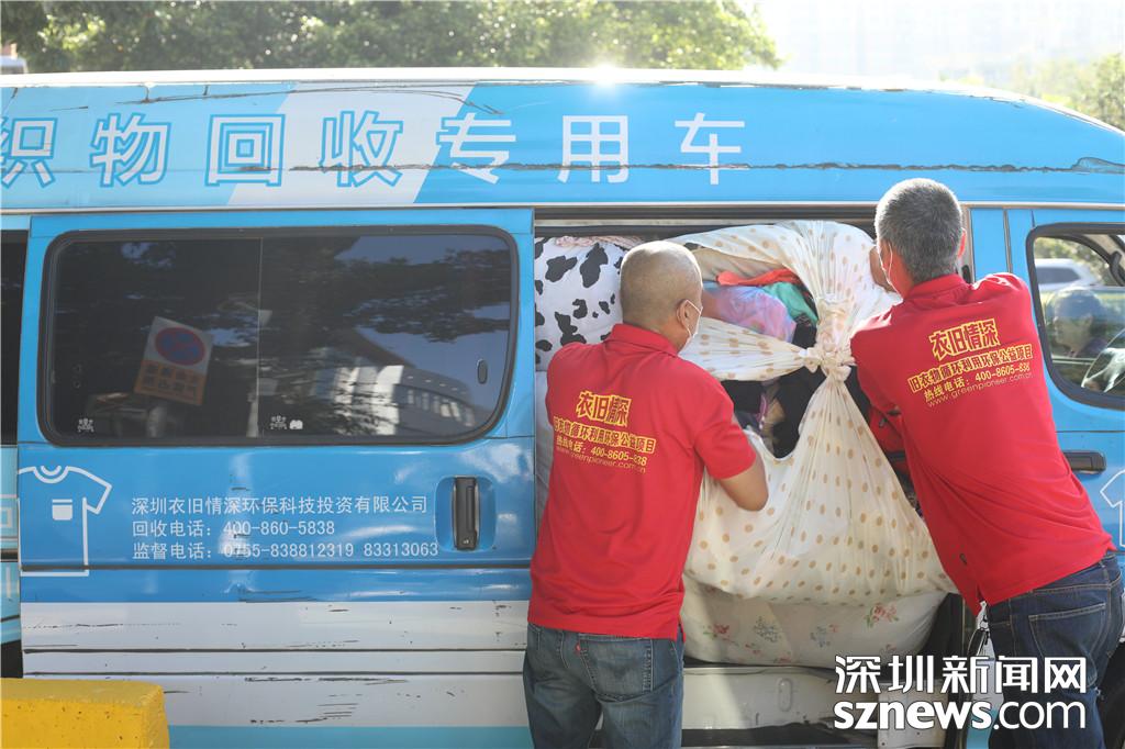 工作人員將衣物放至車內(nèi)