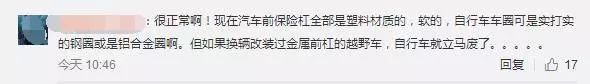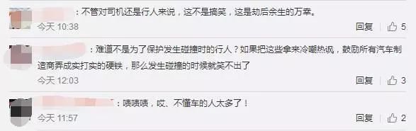 也有網(wǎng)友表示:"不管對(duì)司機(jī)還是行人來說,這不是搞笑,這是劫后余生的萬幸""防撞效果很好啊,本身就是要緩沖的""塑料懟鋼圈不就這樣?""難道不是為了保護(hù)發(fā)生碰撞時(shí)的行人?"。
