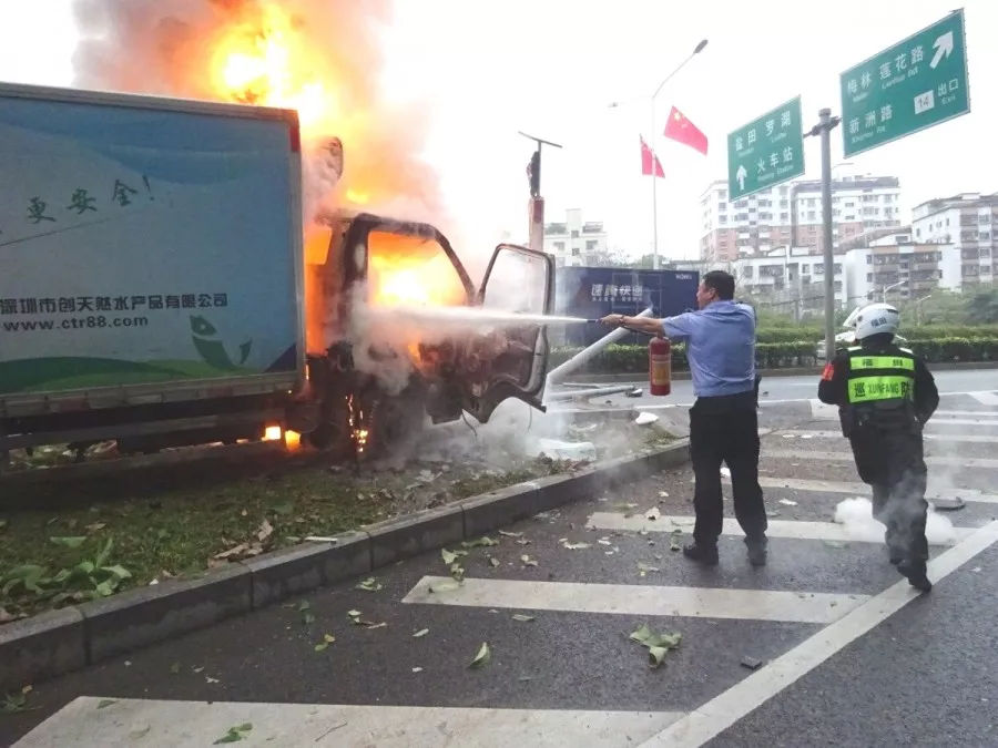 ★★景田派出所巡邏民警卓明浪面對熊熊燃燒的貨車和隨時可能發(fā)生的爆炸,無所畏懼、反應(yīng)快速、處置專業(yè),把損失降為最低。