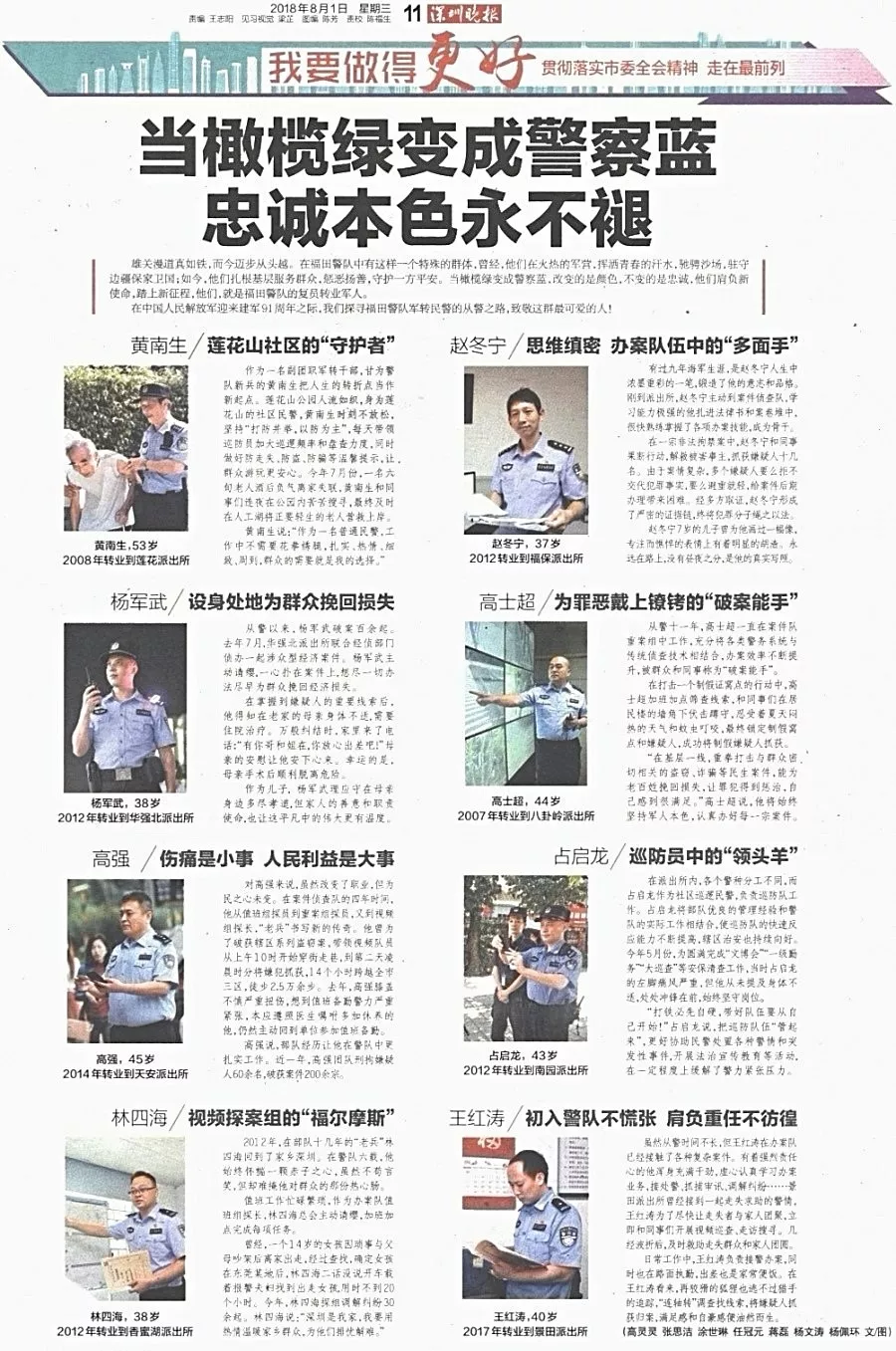 ★★深圳市公安局黨委號召全警爭做“老黃?!薄靶∶鄯洹薄8L锞犛脤嶋H行動踐行使命,傳承責(zé)任與光榮,經(jīng)年累月,點滴養(yǎng)成,躬耕轄區(qū),守望平安,全心全意為人民服務(wù),任時光流逝,初心不改,韶華不負。