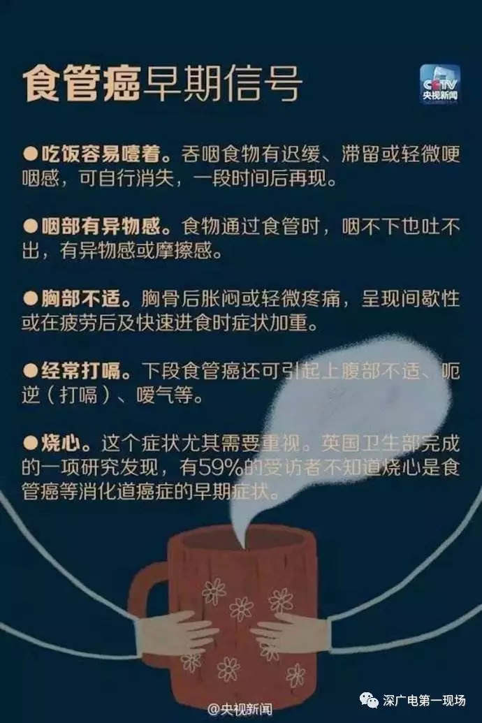 這個溫度既不會過度刺激食道、腸胃,也不容易造成血管收縮。所以,在進食的時候,建議把溫度過高的食物、熱飲先放置一段時間。當然了,食管癌也并不是不治之癥,關(guān)鍵在于早發(fā)現(xiàn)早治療。