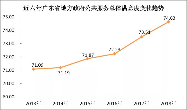 深圳新聞網(wǎng)2019年1月3日訊 近日,廣東省省情調(diào)查研究中心、廣東省社會(huì)科學(xué)院績(jī)效評(píng)估中心公布了《2018年廣東省地方服務(wù)型政府建設(shè)系列調(diào)研報(bào)告》(以下簡(jiǎn)稱(chēng)“報(bào)告”),今年該調(diào)研根據(jù)“公共服務(wù)”和“營(yíng)商環(huán)境”雙向維度,由“廣東省地方政府公共服務(wù)公眾評(píng)價(jià)調(diào)查”和“廣東省營(yíng)商環(huán)境公眾滿(mǎn)意度調(diào)查”兩個(gè)調(diào)查組成。今年調(diào)查共回收有效問(wèn)卷28156份,結(jié)果顯示:2018年廣東省地方政府公共服務(wù)總體滿(mǎn)意度得分為74.63分,較去年提高1.12分,創(chuàng)十年來(lái)最高水平。