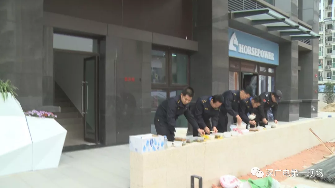 無奈之下,南頭街道執(zhí)法隊一名副大隊長,帶領8名隊員和記者,只好叫來快餐邊吃邊等“紅花雅筑”接受檢查。