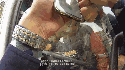 將民警所抓車窗升了上去