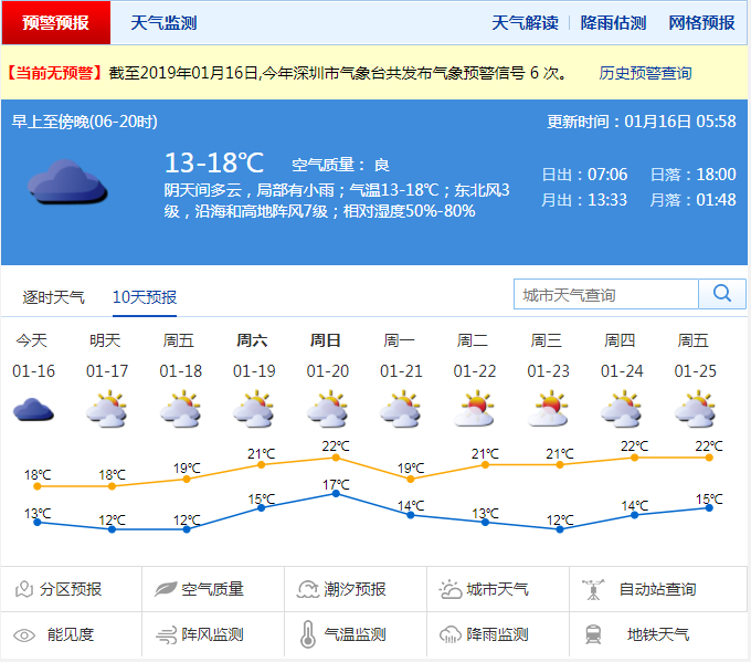 深圳新聞網(wǎng)2019年1月16日訊(記者 陳婕)記者從深圳市氣象局了解到,16日受冷空氣和切變線影響,陰天有分散小雨,天氣顯著轉(zhuǎn)涼,沿海和高地陣風(fēng)6-7級(jí);17-18日多云,可見(jiàn)陽(yáng)光,早晚較冷;19-20日受偏東氣流影響,陰天間多云,間中有分散小雨。21日陰天有小雨轉(zhuǎn)多云,氣溫下降;22日起天氣晴朗干燥。