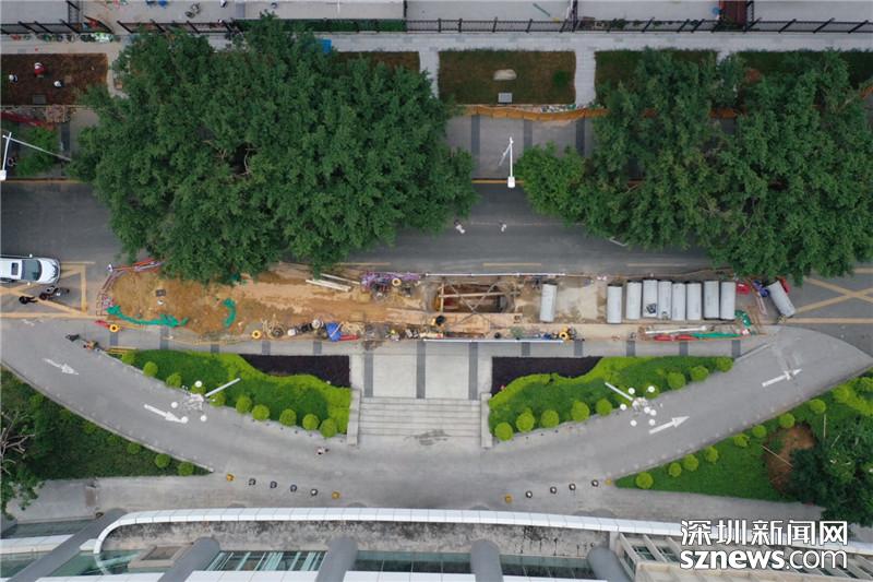 福田區(qū)僑鄉(xiāng)路道路施工現(xiàn)場(chǎng)航拍