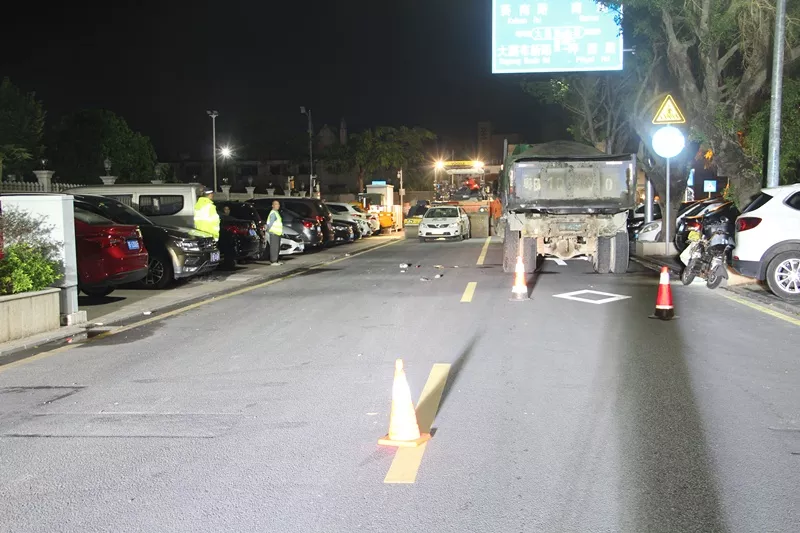 2018年11月27日凌晨2時21分許,龍某駕駛無號牌二輪電動車沿大鵬新區(qū)大鵬街道建設(shè)路由北往南方向行駛至華興新村路段時,車頭徑直撞上了停放在道路旁的粵B號牌輕型自卸貨車車尾,頓時龍某連車帶人摔倒在地。