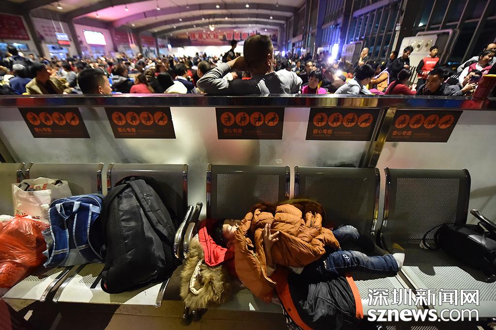 深圳西站候車廳幾乎坐滿乘客,據(jù)統(tǒng)計(jì)有近2400多人乘坐該班次列車