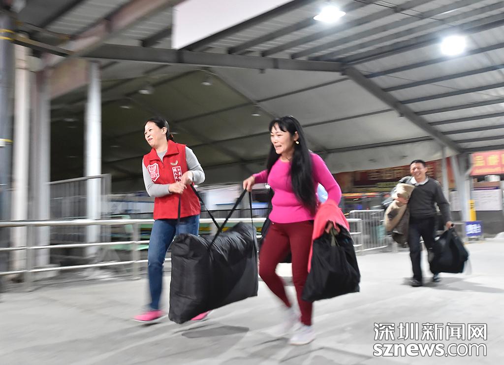深圳義工在現(xiàn)場協(xié)助乘客搬運(yùn)行李