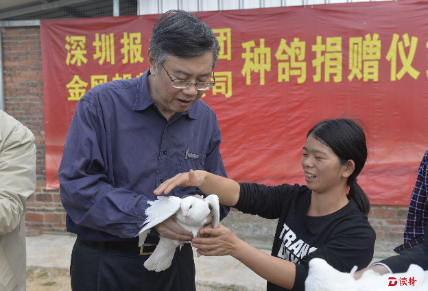 根據(jù)報(bào)業(yè)集團(tuán)“因戶制宜一戶一策”“一個(gè)黨支部結(jié)對(duì)一戶貧困戶”的安排,鐘仿明選擇養(yǎng)鴿脫貧,兩年多來(lái),集團(tuán)金風(fēng)帆物業(yè)公司共計(jì)為他送來(lái)四批480對(duì)種鴿,還請(qǐng)來(lái)深圳光明農(nóng)場(chǎng)的技術(shù)員,對(duì)他進(jìn)行技術(shù)培訓(xùn)?!?80對(duì)種鴿全部成活!”1月20日下午,看到親自來(lái)送種鴿的陳寅等報(bào)業(yè)集團(tuán)領(lǐng)導(dǎo),鐘仿明拿出一面錦旗,非常激動(dòng)地說(shuō):“感謝黨的好政策,感謝深圳報(bào)業(yè)集團(tuán)的真心幫扶!”