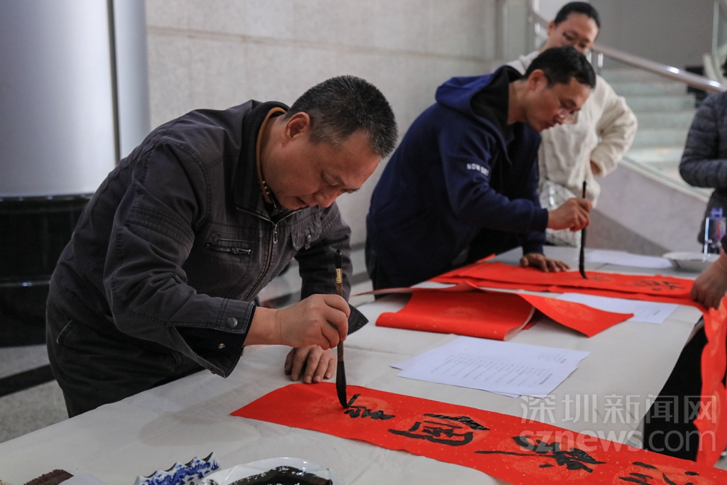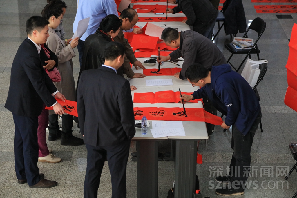 深圳新聞網(wǎng)2019年1月24日訊(記者 張玲實習(xí)生 關(guān)天宇)寫春聯(lián)送祝福是深圳報業(yè)集團每年的例牌環(huán)節(jié),今年也不例外。1月24日下午,深圳報業(yè)集團工會在商報大廈和深圳特區(qū)報業(yè)大廈同時開展主題為“迎新年寫春聯(lián)送春聯(lián)”的活動,平時用鋼筆電腦寫新聞的記者編輯,今天用傳統(tǒng)的筆墨紙硯寫下對新一年的祝福和期許。
