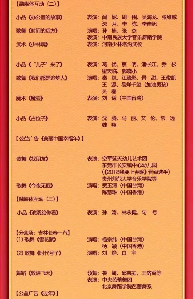 2019春晚節(jié)目單驚喜曝光