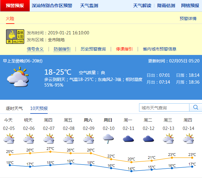 深圳新聞網(wǎng)2019年2月5日訊 深圳初一至初五(5-9日)天氣溫暖濕潤(rùn),可見陽(yáng)光,早晚有輕霧或霧,初一氣溫18-24℃;初六(10日)起冷空氣影響,伴有小雨,氣溫下降。