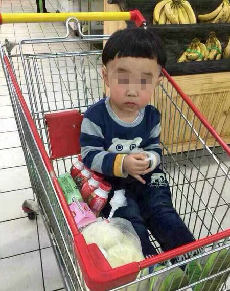 消息配發(fā)的圖片顯示,一名年幼的兒童坐在超市的購物車?yán)?,一臉天真爛漫的模樣。圖片中的兒童指稱是被拐的女孩。