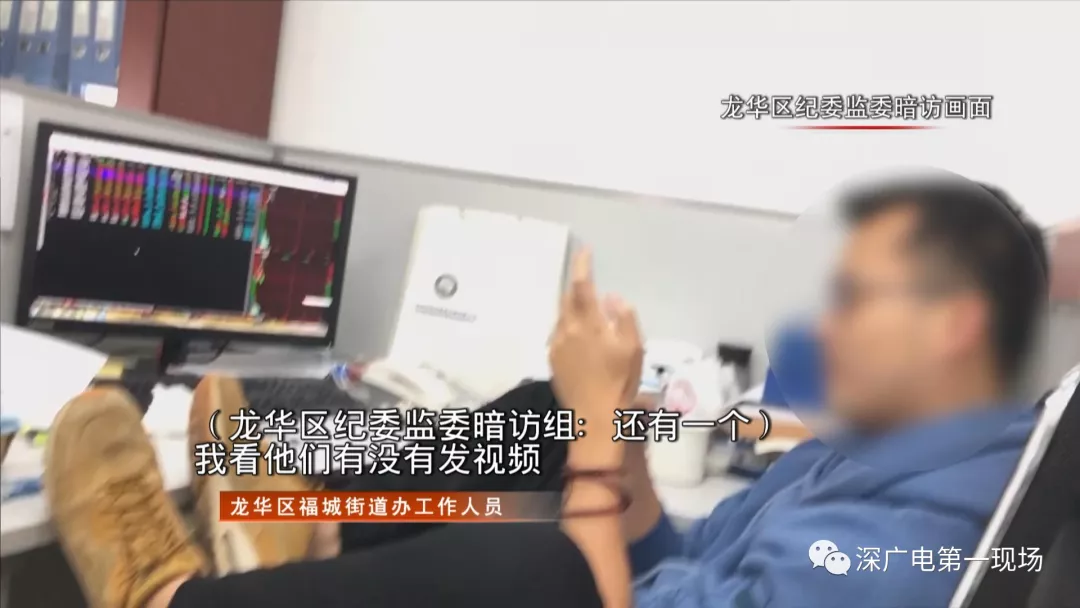 但暗訪組在調(diào)查中發(fā)現(xiàn),福城街道建筑工程事務中心有一名工作人員上班時間把腿翹到桌子上玩手機、看股票。