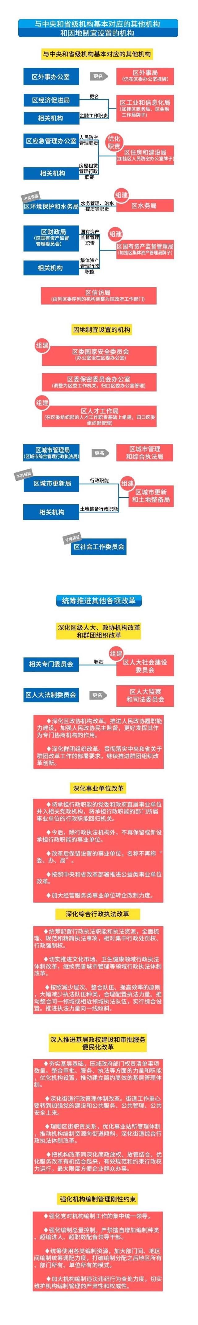 本次區(qū)級(jí)機(jī)構(gòu)改革,總的要求是中央及省明確的改革任務(wù)要堅(jiān)決落實(shí)到位,主要機(jī)構(gòu)設(shè)置同省、市保持基本對(duì)應(yīng)。同時(shí),又充分體現(xiàn)地方機(jī)構(gòu)綜合設(shè)置的特色,以推進(jìn)黨政機(jī)構(gòu)職能優(yōu)化協(xié)同高效為著力點(diǎn),改革機(jī)構(gòu)設(shè)置,優(yōu)化職能配置,深化轉(zhuǎn)職能、轉(zhuǎn)方式、轉(zhuǎn)作風(fēng),提高效率效能,積極構(gòu)建系統(tǒng)完備、科學(xué)規(guī)范、運(yùn)行高效的機(jī)構(gòu)職能體系,構(gòu)建簡約高效的基層管理體制。