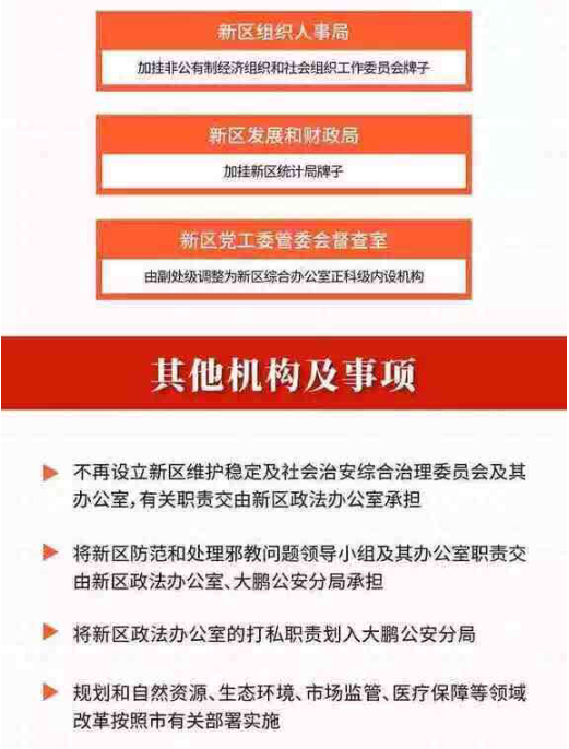 改革后的大鵬新區(qū)黨工委、管委會(huì)機(jī)構(gòu)設(shè)置表