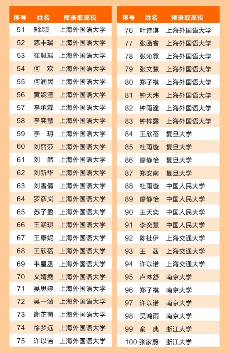 深圳晚報(bào)2019年02月17日訊 2月16日,記者從深圳外國語學(xué)校獲悉,該校2019年保送創(chuàng)紀(jì)錄。截至目前,該校外語書院126人收獲289份預(yù)錄取通知,其中北京大學(xué)、清華大學(xué)保送9人;北京外國語大學(xué)、上海外國語大學(xué)保送74人;香港中文大學(xué)(深圳)25人、華南理工大學(xué)31人……