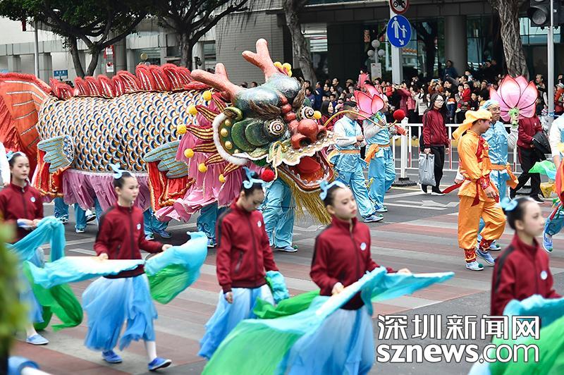 傳統(tǒng)的舞龍舞獅也增添了不少節(jié)日氣氛
