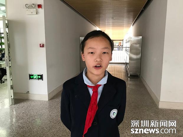 七年級(jí)4班的甘欣怡接受記者采訪