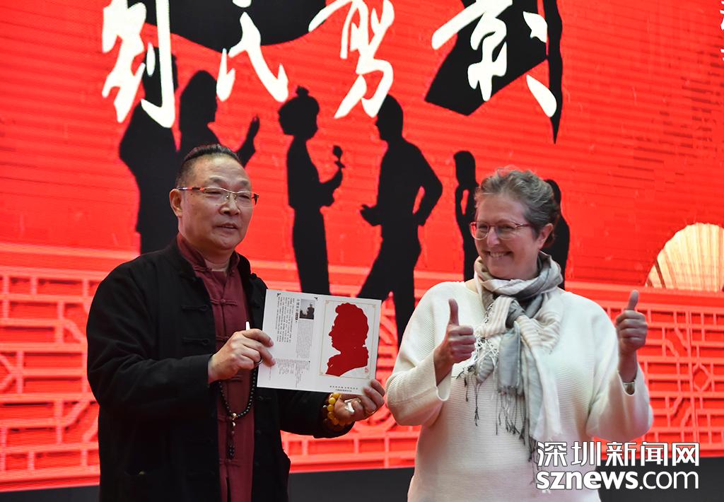 剪影大師劉期培現(xiàn)場表演,不到一分鐘時間就剪出隨機挑選觀眾的剪影