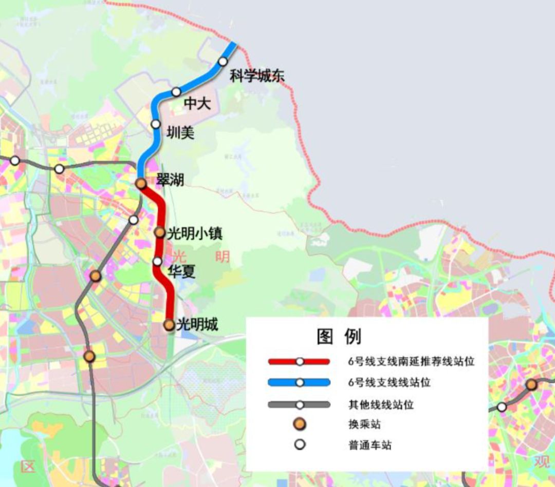 6號(hào)線支線是地鐵四期開工的5條線路之一,也是深圳和東莞之間第一條確定直連貫通的地鐵線路。6號(hào)線支線南延起于翠湖站南側(cè),向南沿光明大道高架敷設(shè),最終在廣深港高鐵光明城站的站前廣場(chǎng)設(shè)置光明城站,并與13號(hào)線北延相交。