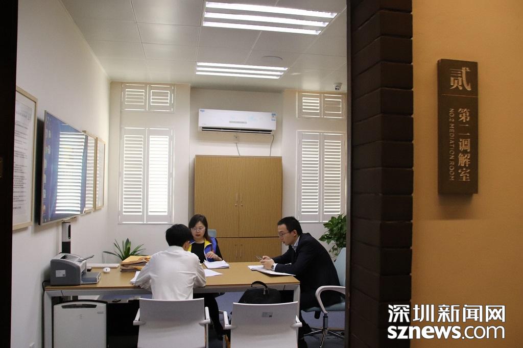 第一調(diào)解室內(nèi)兩宗案件正在進(jìn)行調(diào)解工作