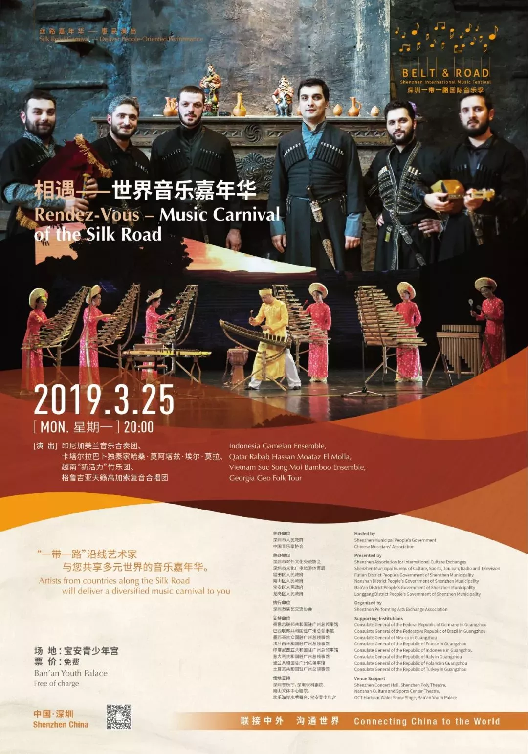 來自印度尼西亞、卡塔爾、越南、格魯吉亞等“一帶一路”沿線國家藝術團組,用音樂串聯(lián)起“一帶一路”的人文藝術交流,與您共享多元世界的音樂嘉年華!