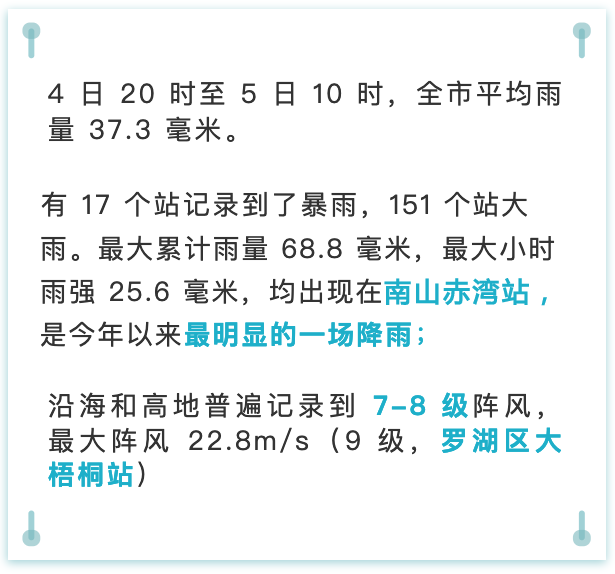 受加強(qiáng)的偏南氣流影響,昨天夜間深圳普降大雨局部暴雨。