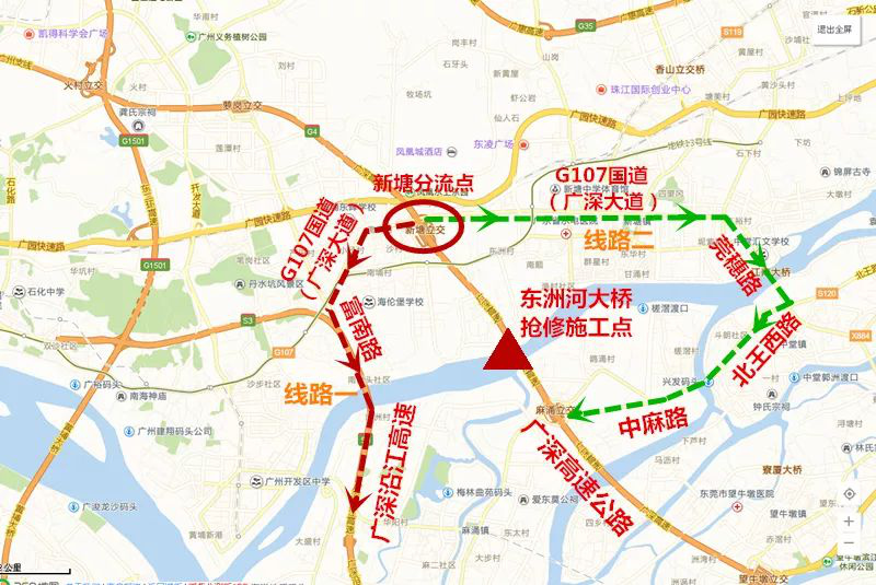 深圳方向新塘立交出口繞行線路