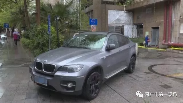 今天上午九點多,《第一現(xiàn)場》記者來到景源華庭小區(qū),看到一輛深灰色的寶馬車還停在停車場的出口位置,但車上已經沒有人了。