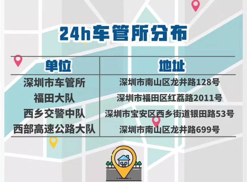 地址:南山區(qū)龍井路128號(hào)深圳市公安局交通警察支隊(duì)車輛管理所一樓西側(cè)