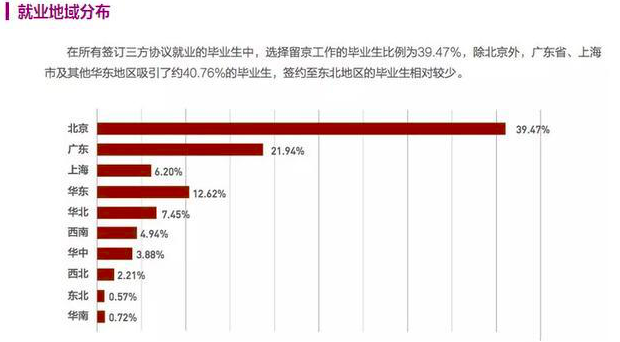 北京大學(xué)2018年就業(yè)質(zhì)量報告顯示,2018年廣東是北大畢業(yè)生除北京外就業(yè)分布最多的地區(qū)。