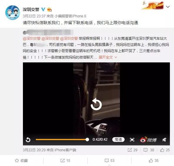 “舉報啊舉報?。。?!大巴車三次差點出車禍!司機一路搖頭晃腦摸鼻子?。。。 ?span style="text-indent: 2em;">3月22日晚,深圳交警在微博上接到網(wǎng)友舉報。