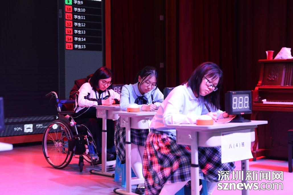 校決選現(xiàn)場(chǎng),初中的同學(xué)們通過(guò)猜詞、聽寫、國(guó)學(xué)知識(shí)搶答三個(gè)環(huán)節(jié),帶來(lái)了精彩的視聽盛宴。他們用掌聲相互鼓勵(lì),用眼神激勵(lì)彼此,整個(gè)活動(dòng)下來(lái),溫暖又特別。有學(xué)生告訴記者,他們非常期待深圳市復(fù)選,希望借復(fù)選的環(huán)節(jié)——國(guó)學(xué)知識(shí)測(cè)評(píng)、優(yōu)秀圖書推薦演講和國(guó)學(xué)才藝秀磨練自己,提升自己。