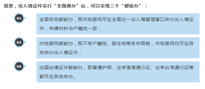 4月1日起,中華人民共和國普通護(hù)照、往來港澳通行證、往來臺灣通行證等出入境證件實行“全國通辦”。