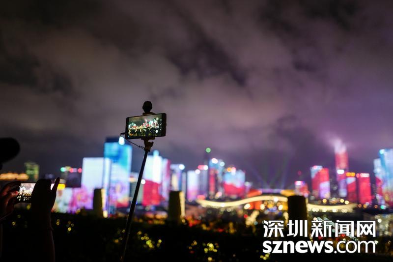 市民們紛紛拿出手機(jī)拍攝燈光秀演出。