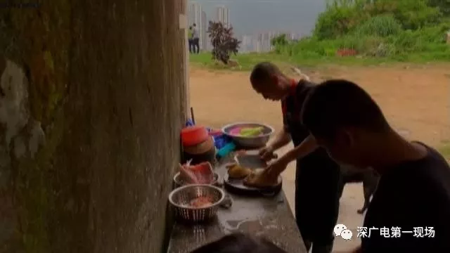 除了污染周邊環(huán)境,這家農(nóng)家樂的食品安全也令人擔憂:切配肉菜就在露天的環(huán)境中,不時有綠頭蒼蠅落在食材上面;