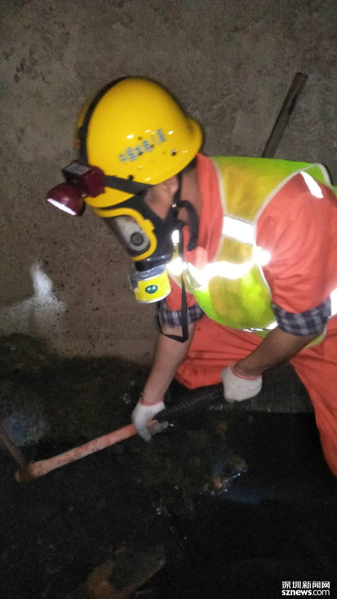 據(jù)悉,皇崗河暗渠作業(yè)屬于有限空間作業(yè),(指與外界相對隔離,進出口受限,自然通風不良,足夠容納一人進入并從事非常規(guī)、非連續(xù)性作業(yè)的有限空間。)而有限空間容易出現(xiàn)缺氧窒息、中毒、火災(zāi)和爆炸等其他威脅生命安全的危險。經(jīng)了解,暗涵內(nèi)有毒有害氣體濃度較高,施工人員都是戴著氧氣罩、穿著救生衣、攜帶便攜式有毒有害氣體檢測儀全副武裝下涵作業(yè)的;淤積厚度超過預(yù)期,施工過程中不確定因素很多,管涌和“堰塞湖”現(xiàn)象給施工帶來了巨大風險。