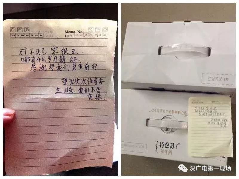 據(jù)消防員們介紹,收到的禮物中有牛奶、王老吉等飲料,有些是市民親自送上門的,有些則是由外賣員送來(lái)的,跟禮物一起的還有一些信件和紙條,也許從這里面,我們可知一二。
