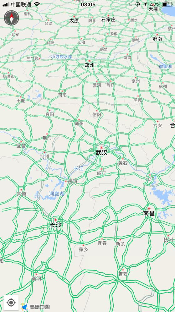 再隨便來看凌晨3點(diǎn)05分的幾個城市,重慶、武漢、長沙、南昌等,周邊路況顯示良好。