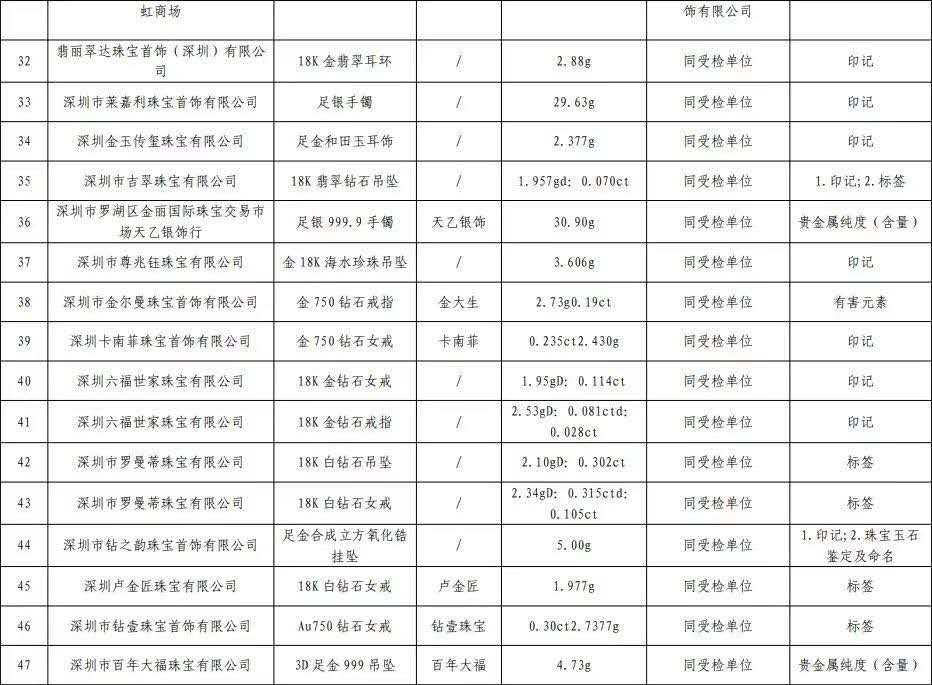 原標(biāo)題:深圳最新抽檢珠寶抽檢結(jié)果公布不合格產(chǎn)品發(fā)現(xiàn)率16.3%