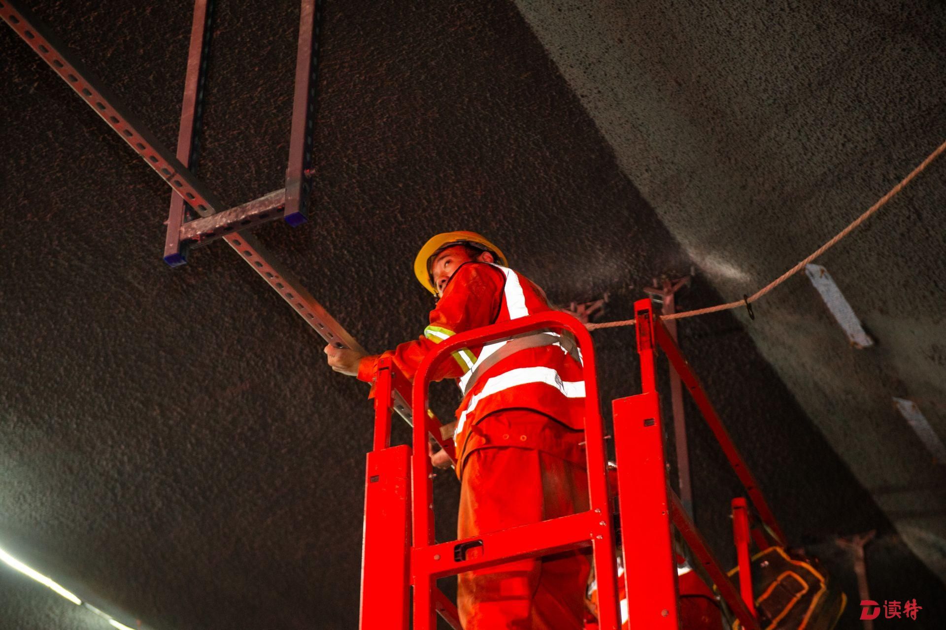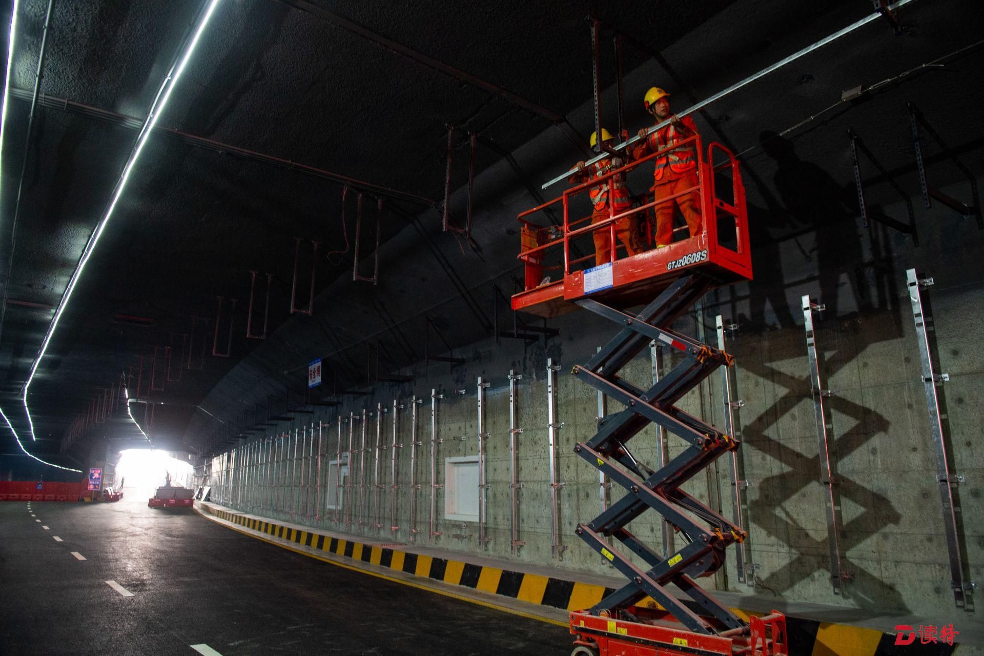 4月16日,讀特記者從臨海大道與前灣三路路口附近乘車進(jìn)入地下道路,看到前海地下道路已經(jīng)實現(xiàn)主體隧道貫通,項目進(jìn)入裝飾裝修和機(jī)電設(shè)備安裝階段,工人正在隧道內(nèi)安裝照明、通風(fēng)、排水、消防等設(shè)施。在項目工程樣版段,記者看到隧道兩側(cè)的已經(jīng)裝好搪瓷鋼板,頂部的連續(xù)燈帶和交通指示燈也已經(jīng)安裝到位,地面上也已經(jīng)劃好了分道線。中鐵四局機(jī)電公司相關(guān)負(fù)責(zé)人表示,目前前海地下道路機(jī)電裝修工程樣板已經(jīng)順利通過驗收,為接下來大面積機(jī)電裝修施工提供了標(biāo)準(zhǔn)指引。該負(fù)責(zé)人表示:“全線共安排了一百多名工人,分區(qū)域進(jìn)行設(shè)備安裝和裝飾裝修,將確保項目年底竣工、2020年初通車,為前海發(fā)展提供更好交通保障?!?/p>