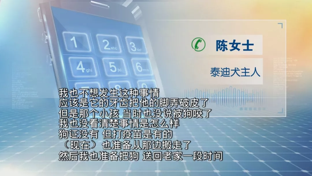 今天早上,城管部門(mén)也前往了小區(qū)了解情況,但涉事的狗主陳女士并不在家。記者隨后電話聯(lián)系到上陳女士,對(duì)方表示,這只泰迪犬她已經(jīng)養(yǎng)了兩年,每年都有去注射狂犬疫苗。