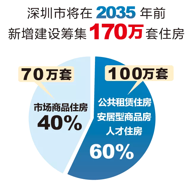 市住建局相關(guān)負(fù)責(zé)人介紹,2018年8月,市政府出臺了《關(guān)于深化住房制度改革加快建立多主體供給多渠道保障租購并舉的住房供應(yīng)與保障體系的意見》(以下簡稱“主文件”)。新時代,深圳市將針對不同收入水平的居民和專業(yè)人才等各類群體,著力構(gòu)建多層次、差異化、全覆蓋的住房供應(yīng)與保障體系,努力實現(xiàn)全體市民住有所居。“主文件”提出深圳市將在2035年前新增建設(shè)籌集170萬套住房,其中:市場商品住房70萬套,占40%左右;公租房、安居型商品房和人才住房共100萬套,占60%左右。