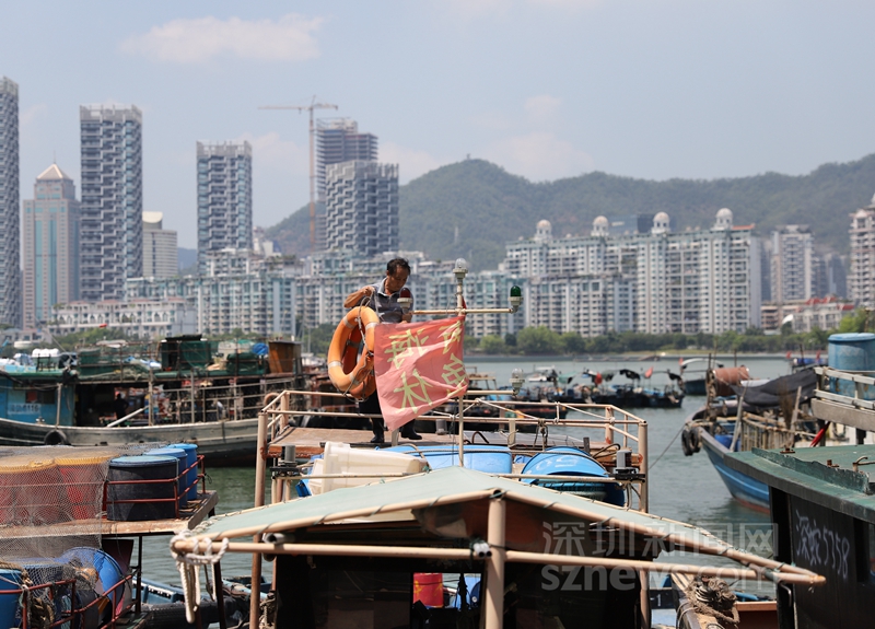 16時(shí),深圳漁民回港口后整理船上的救生圈(楊浩翰 攝)
