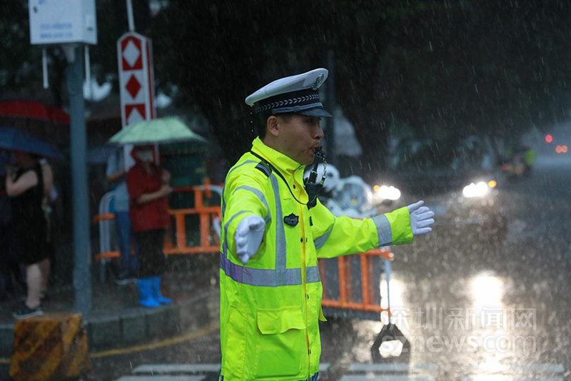 20時,交警雨中執(zhí)勤(涂勝 攝)
