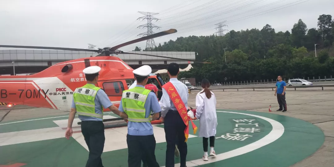 此時(shí)正值五一假期,道路擁堵,病患急需入院做進(jìn)一步觀察,現(xiàn)場交警聯(lián)合金匯通航立刻啟動航空救援機(jī)制,將傷者送上救援直升機(jī)立刻送往醫(yī)院救治,11時(shí)49分從荷坳收費(fèi)站起飛,12時(shí)03分到達(dá)南方醫(yī)科大學(xué)深圳醫(yī)院,原本1個(gè)半小時(shí)的車程,僅用14分鐘就將傷員送至醫(yī)院。